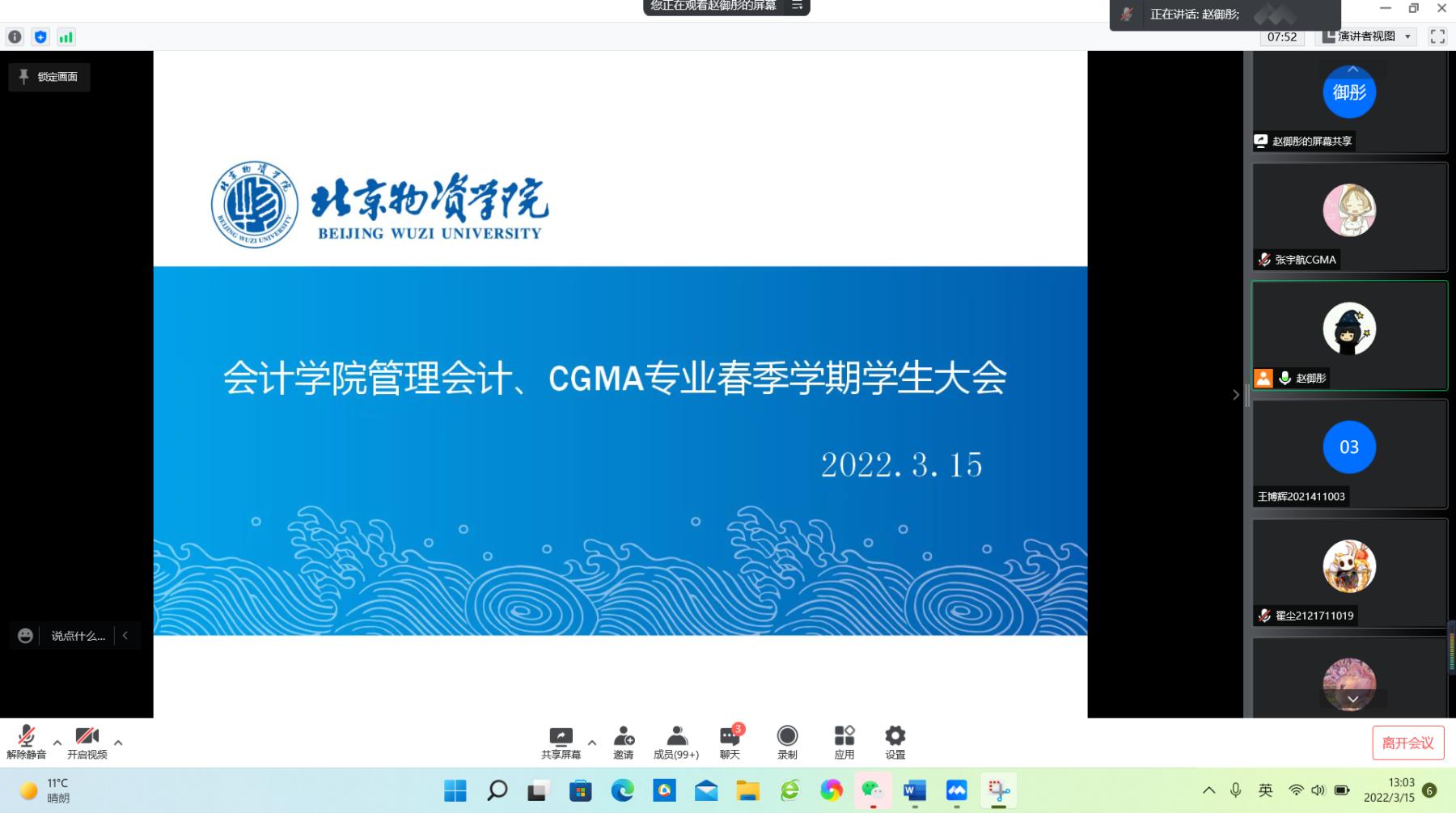 为了强化学生对于疫情防控的认识,解决学生日常的常见问题,十大手机赌·博游戏大全 于3月15日中午召开管理会计、CGMA专业春季学期线上学生大会。主持此次会议的是十大手机赌·博游戏大全 团委书记赵御彤老师。