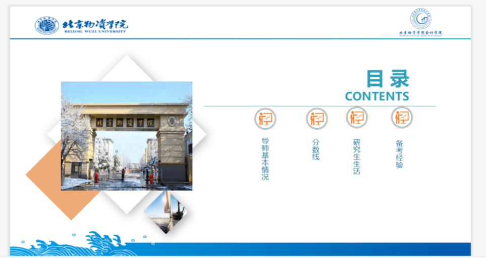 会上,本科就读于临沂大学,研究生考入北京物资学院会计专硕的崔玉箫同学就物资学院的基本情况等进行分享。崔同学详细介绍了北京物资学院导师基本情况、会计专硕历年分数线、研究生生活及备考经验几个方面,并对北京物资学院研究生奖助政策、校园环境及各地研究生人才引进政策进行了详细介绍。