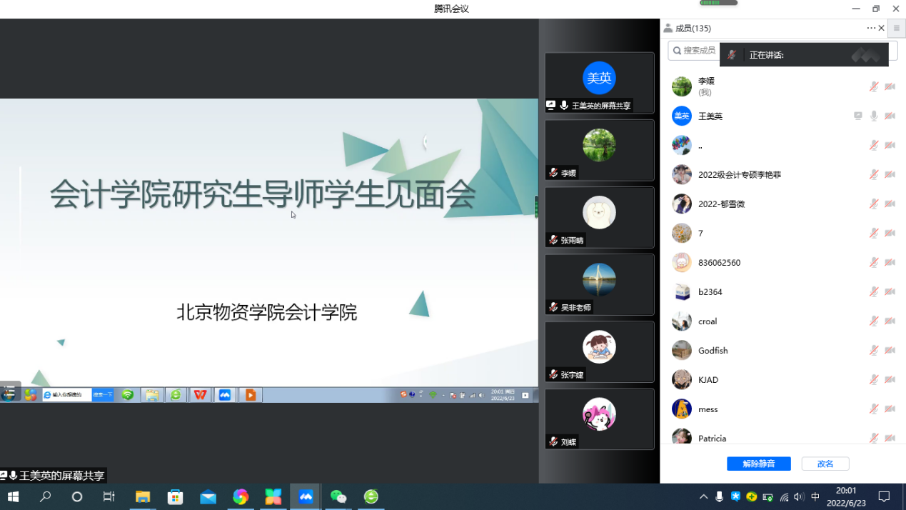 最后,王美英副教授对近期导师互选工作时间安排、具体工作部署进行了介绍,祝愿各位同学在北京物资学院度过美好的研究生生活。