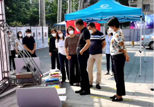 在迎接2022级新生报到处设置了“书山友路”排队通道,排队通道的台阶两边摆满了各种专业书籍和小桌板、台灯等“低碳绿色”学习用品,成为迎新中一道靓丽风景线。