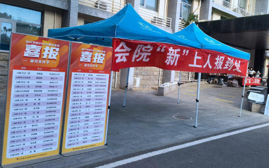 迎新报到处的2022届考研喜报、2022级新生班主任介绍等展板吸引着新生的目光,十大手机赌·博游戏大全