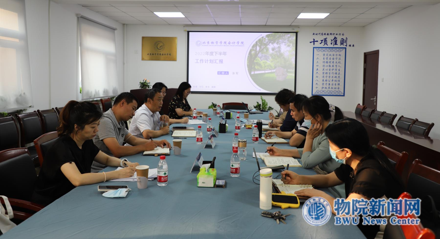 院长张军进行工作汇报,他对学院上学期工作进展和秋季学期工作计划进行了汇报,重点结合学校下半年重点工作从工作思路,人才培养,学科、科研与社会服务,师资队伍,对外合作与交流,党建工作、文化建设与治理体系,工作中存在的问题和举措等方面进行重点汇报。学院党委书记刘艳荣,副院长陈娟、党委副书记吴忠华、院长助理王美英分别就相关工作进行了补充汇报和说明。