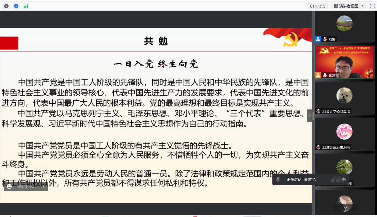 于2022年11月23日下午举办主题为“喜庆二十大 永远跟党走 奋进新征程”的2022年入党积极分子培训班。培训班第一讲邀请我校马克思主义学院直属党支部书记张建宝老师主讲,十大手机赌·博游戏大全