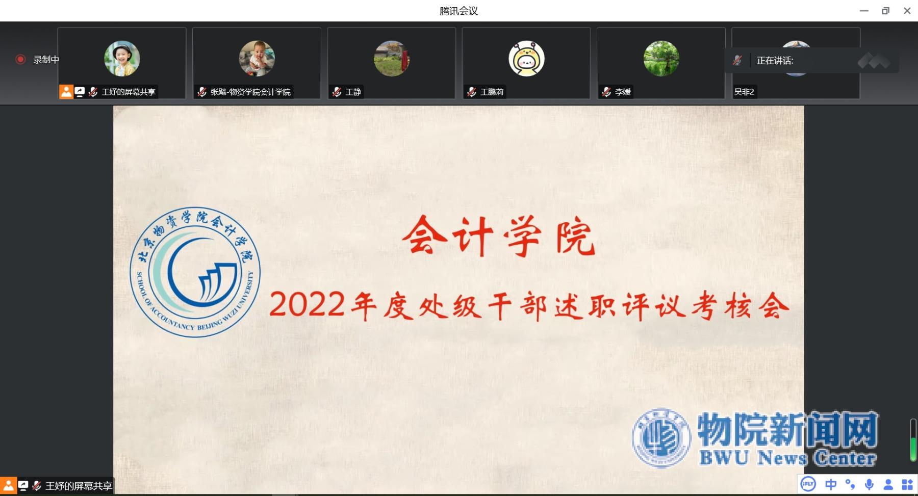2022年度工作报告,学院处级领导干部在认真总结2022年度履行岗位职责和完成工作任务的情况基础上,从德、能、勤、绩、廉等方面依次进行了述职。述职结束后,全体老师在线参加了测评。