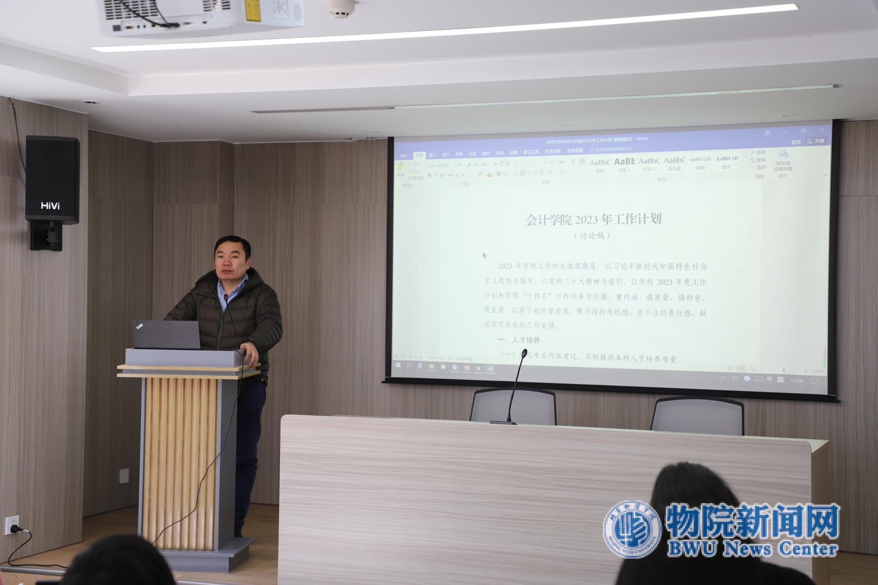 陈娟副院长结合本科教学水平评估和教学相关工作,与大家交流了人才培养的思路和想法,对人才培养与专业发展总体框架和思路进行解读,重点安排部署了开展有组织的教学研究、教育部本科教育教学审核评估、国际合作“三个一”目标推进落实等专项工作;党委副书记吴忠华重点对2023年学生就业工作进行再动员、再部署,对学校2023年就业工作“开学即决战、起步即冲刺”的精神和安排进行说明;院长助理王美英对标“十四五”目标报告了学院2022年科研工作完成情况,重点对研究生培养质量提升、研究生导师遴选和进行有组织的科研等方面进行说明。