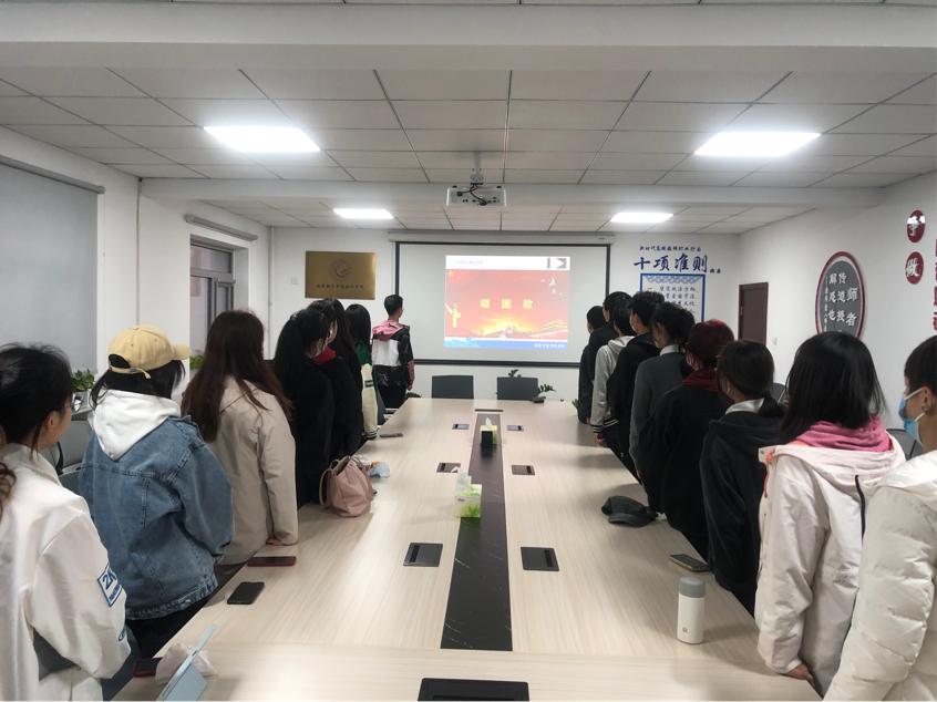 首先是齐唱国歌,主题团班会在国歌声中拉开序幕,全体同学怀着崇高的敬意和无比自豪的心情开始今天的主题团日活动