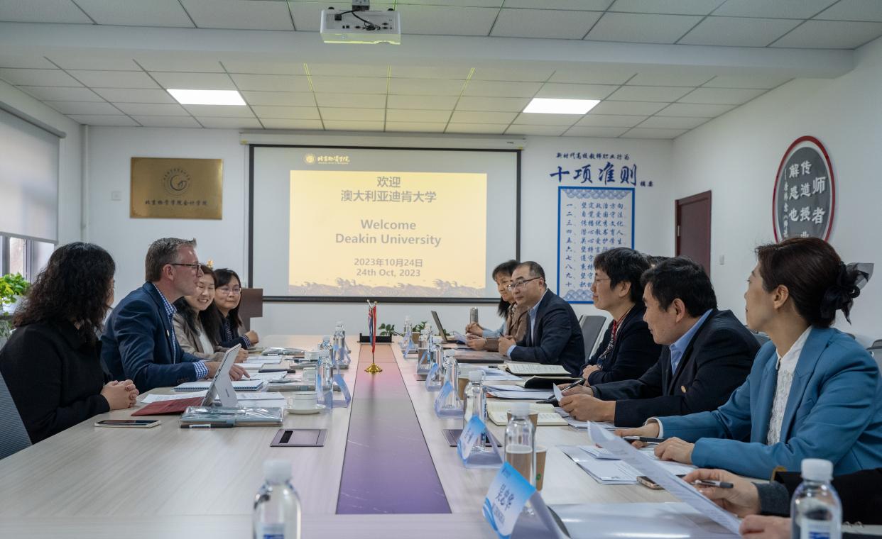 Prof. Colin Higgins院长对学校的热情接待表示感谢,并对我校取得的办学成果及国际化愿景表示赞赏。会谈中,他介绍了迪肯大学的办学情况,重点对商学院师生规模和发展理念、国际合作等方面作了介绍,畅谈了两校在进一步提升学生联合培养效果、加强教师科研交流、拓展学生交流活动等3个方面的合作思路。他表示,两个学院有深入契合的合作点,希望通过此次来访交流,进一步探索合作空间,推动合作迈上新台阶。