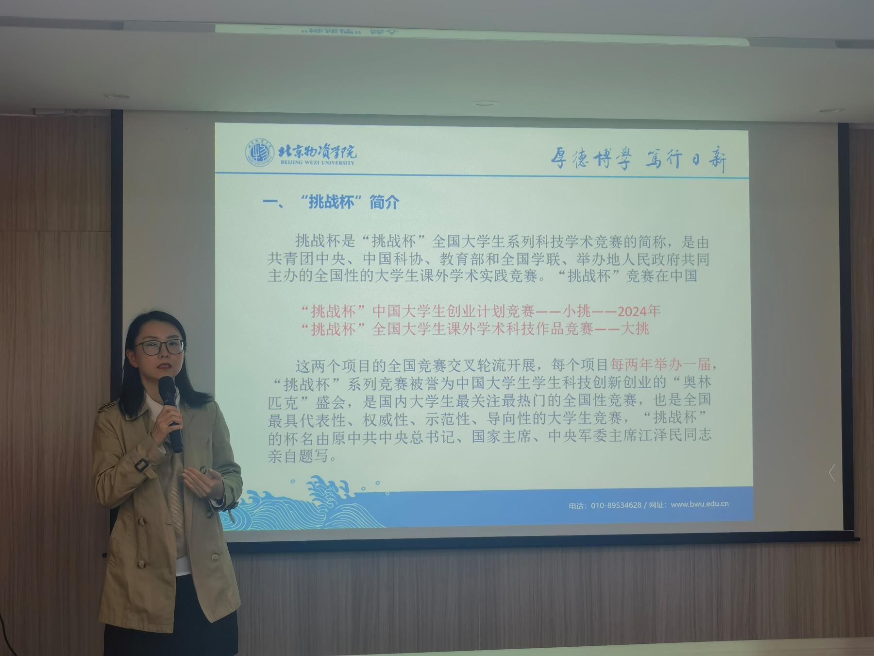 全体教师作了2023年度“挑战杯”赛事说明。会上,她对“挑战杯”中国大学生创业计划竞赛和“挑战杯”全国大学生课外学术科技作品竞赛做了详细介绍。