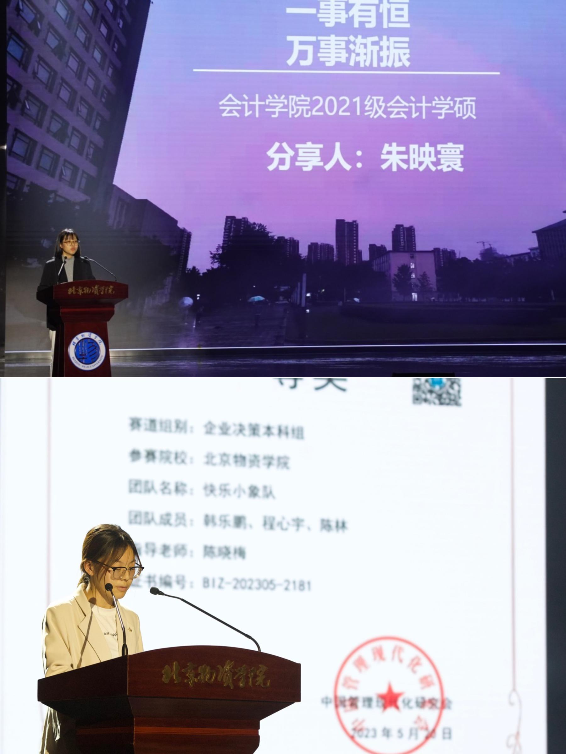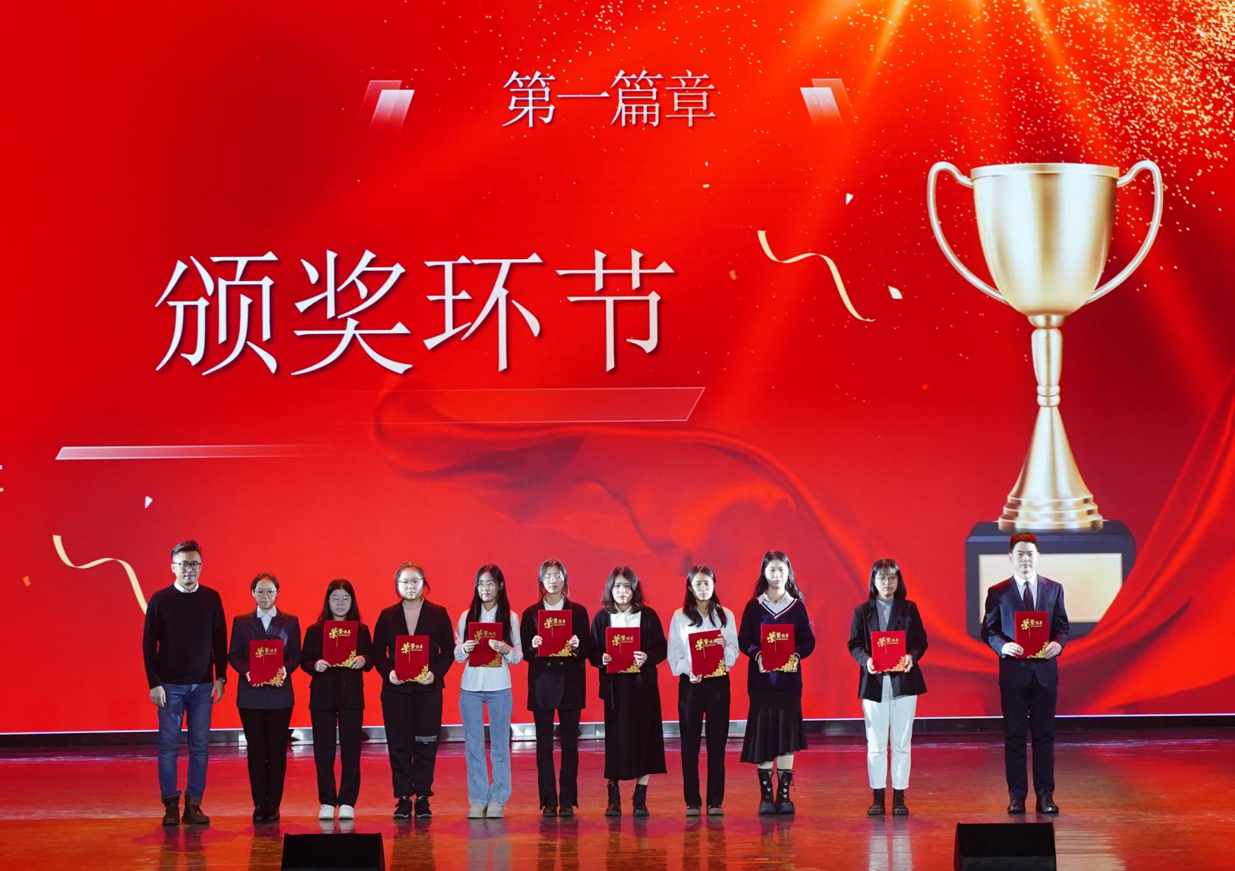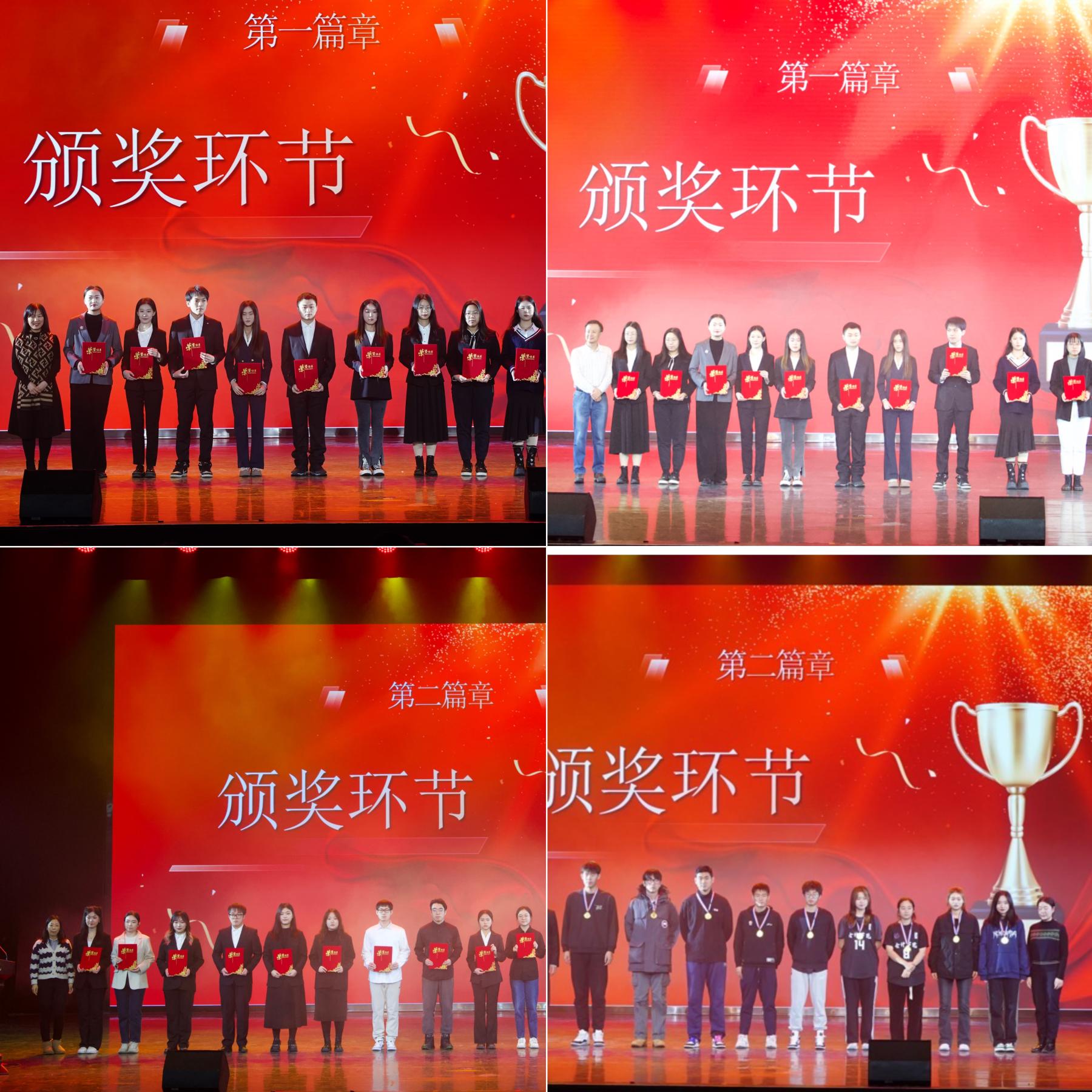 团委书记赵御彤分别为研究生校级奖学金、研究生院级奖学金颁奖、本科生校级奖学金、腾龙飞凤杯男篮、女篮冠军颁奖。