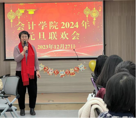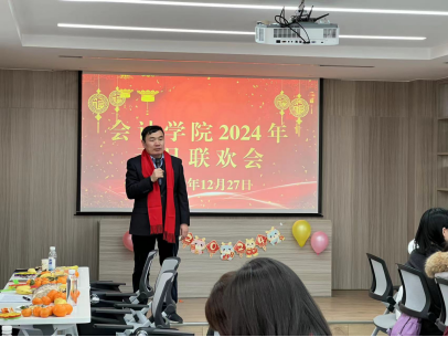 院长张军致新年贺词。他回顾了过去一年学院取得的成果,并对全体师生的辛勤付出表示感谢。他鼓励全体教职工在新的一年里继续努力,为学院的发展贡献力量,再创佳绩。话语中充满着对未来的期望与信心,让在场的教师们倍感振奋。
