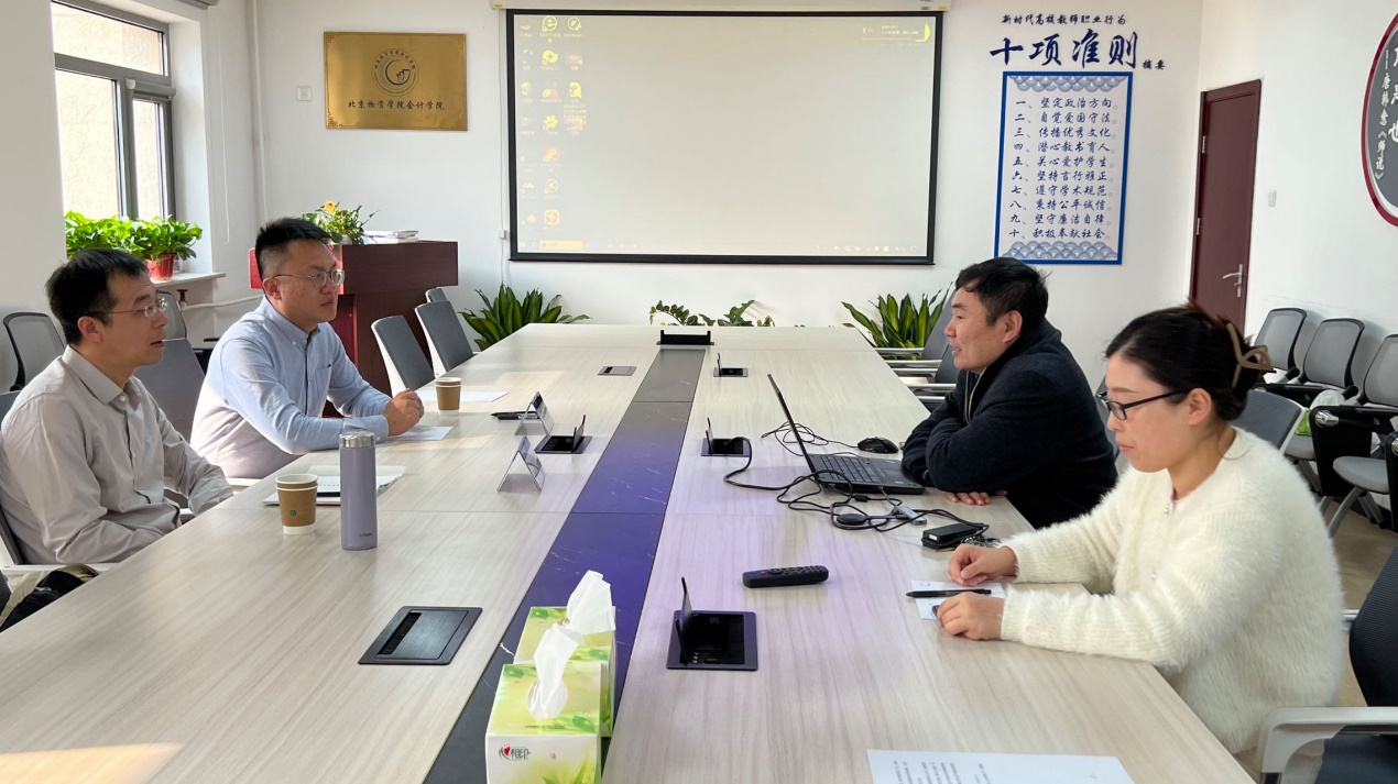 在张军院长的陪同下,邢铭强副院长一行参观了学院的展板,了解了学院的科研、教学情况以及取得的丰硕成果。随后,双方就如何开展有组织的科研活动以及如何培养青年教师快速成长展开了热烈的讨论。