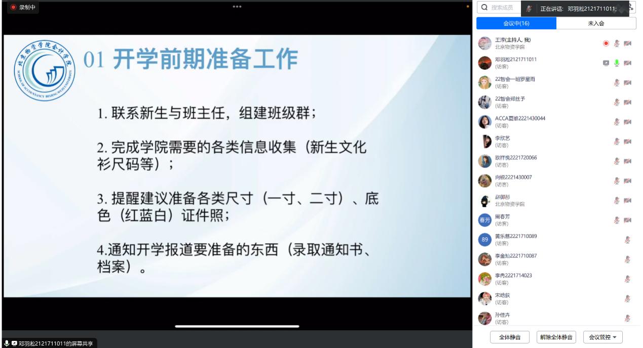 于8月24日在线上开展2024级本科新生班主任助理培训会。2024级横向负责辅导员赵御彤、2023级优秀班主任助理代表邓羽淞、李欣艺以及全体2024级新生班主任助理参加本次培训。