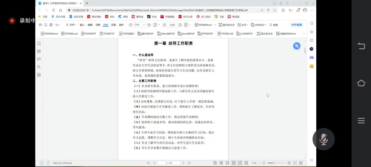 班导工作手册(试行)》,赵御彤老师进行详细解读,并指出该手册是班主任助理们开展工作的重要参考和行动指南。在培训过程中,赵御彤老师讲解了班主任助理的工作职责以及工作内容,并希望班主任助理要认真完成工作表,为班级未来的发展打下良好的基础。随后赵御彤老师向各位新生班主任助理介绍了党支部经过优化后的组织结构。本科生党支部依据不同专业进行了科学合理的划分与调整,更好地加强党建与学业指导的深度融合。