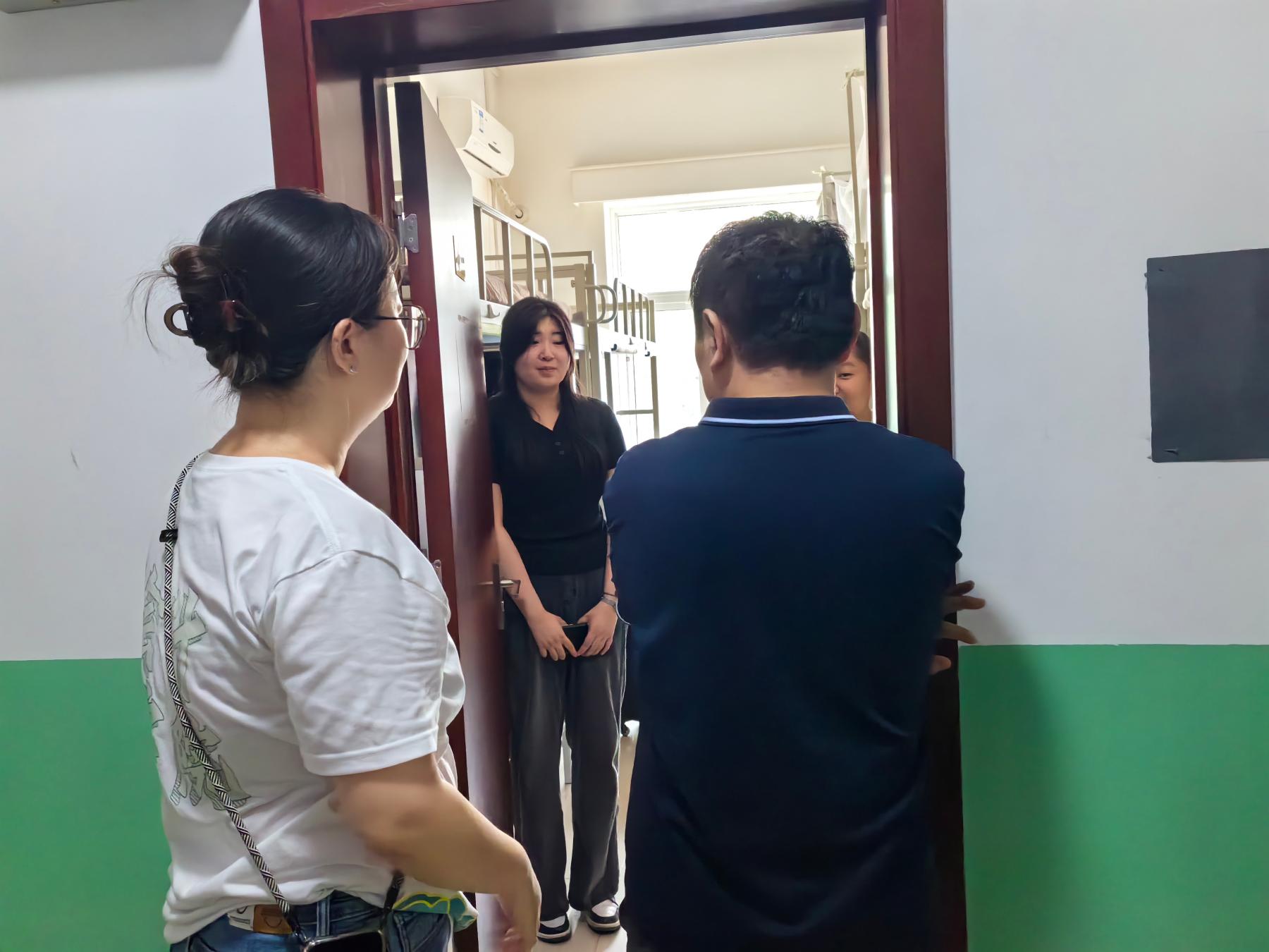 班子和辅导员前往新生宿舍走访,深入了解学生们的基本情况和住宿条件,与新生亲切交谈、关心大家的适应情况,老师们细致入微的关怀让新生倍感温暖。