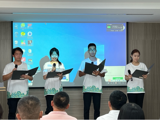 的四位学生代表满怀深情共同朗诵了一首为教师节精心准备的诗歌《老师,我想对您说》,每一句话都饱含着学生对老师们的感恩与祝福。