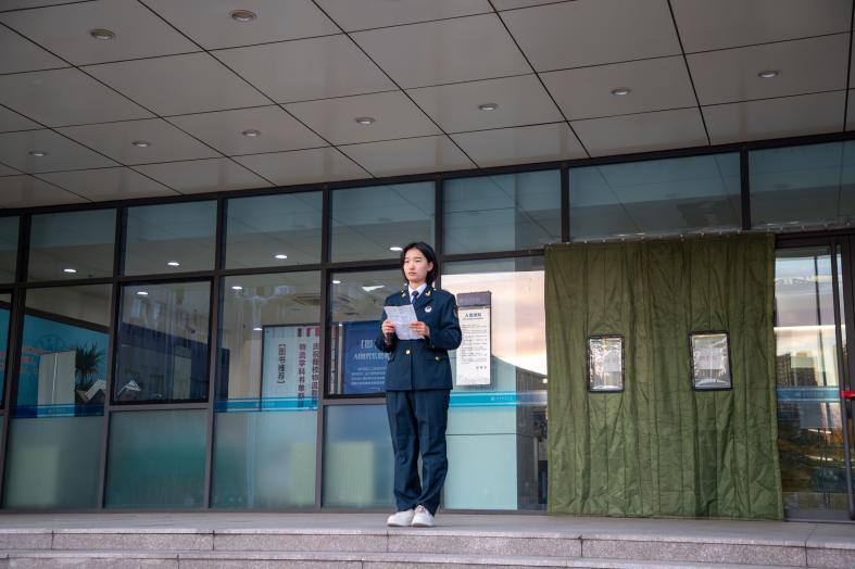 接下来,23级智能会计班的黄雨欣同学以《参军报国,无上光荣》为题进行国旗下宣讲,她表示参军是每个公民应尽的义务,在部队的两年深深地体会到军人的奉献精神和坚强意志。她的宣讲激发了同学们的爱国热情和报国之志,进一步弘扬了爱国主义精神。最后她号召同学们参军入伍,积极投身祖国的建设中去,为国家奉献青春。