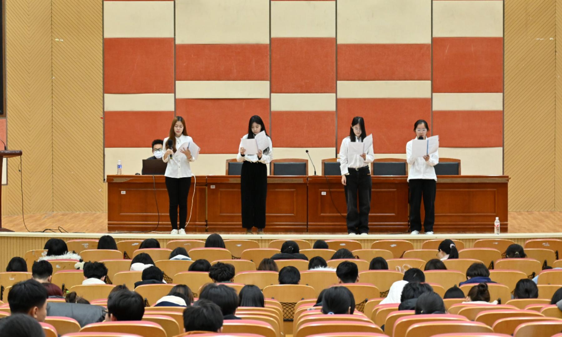 学生代表带来原创诗朗诵《会计之光,学风之韵》。同学们用会计专有名词讲述自己的学习生活,从塑造诚信、严谨、勤奋的学风到会计行业应秉承诚信为本的职业道德。