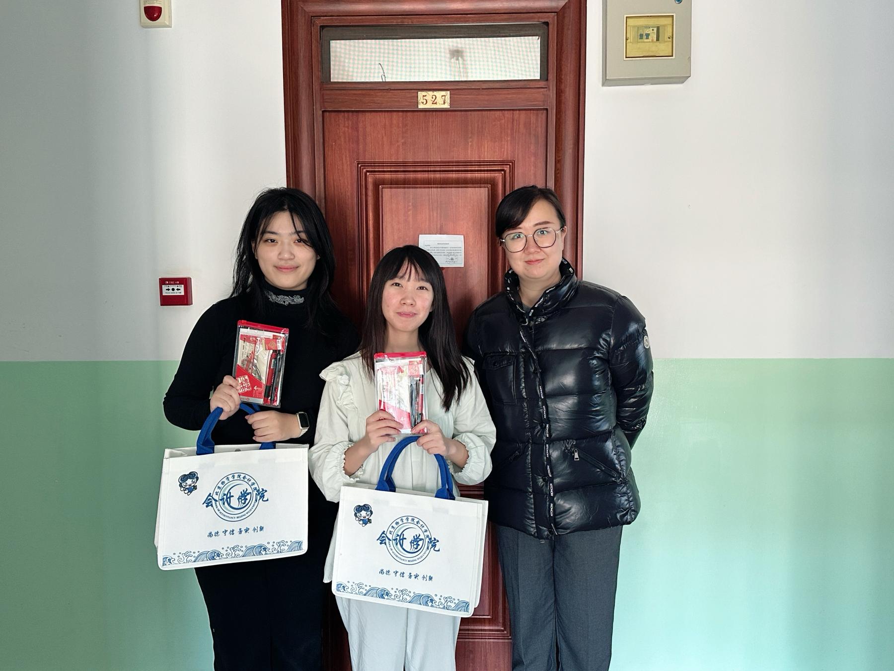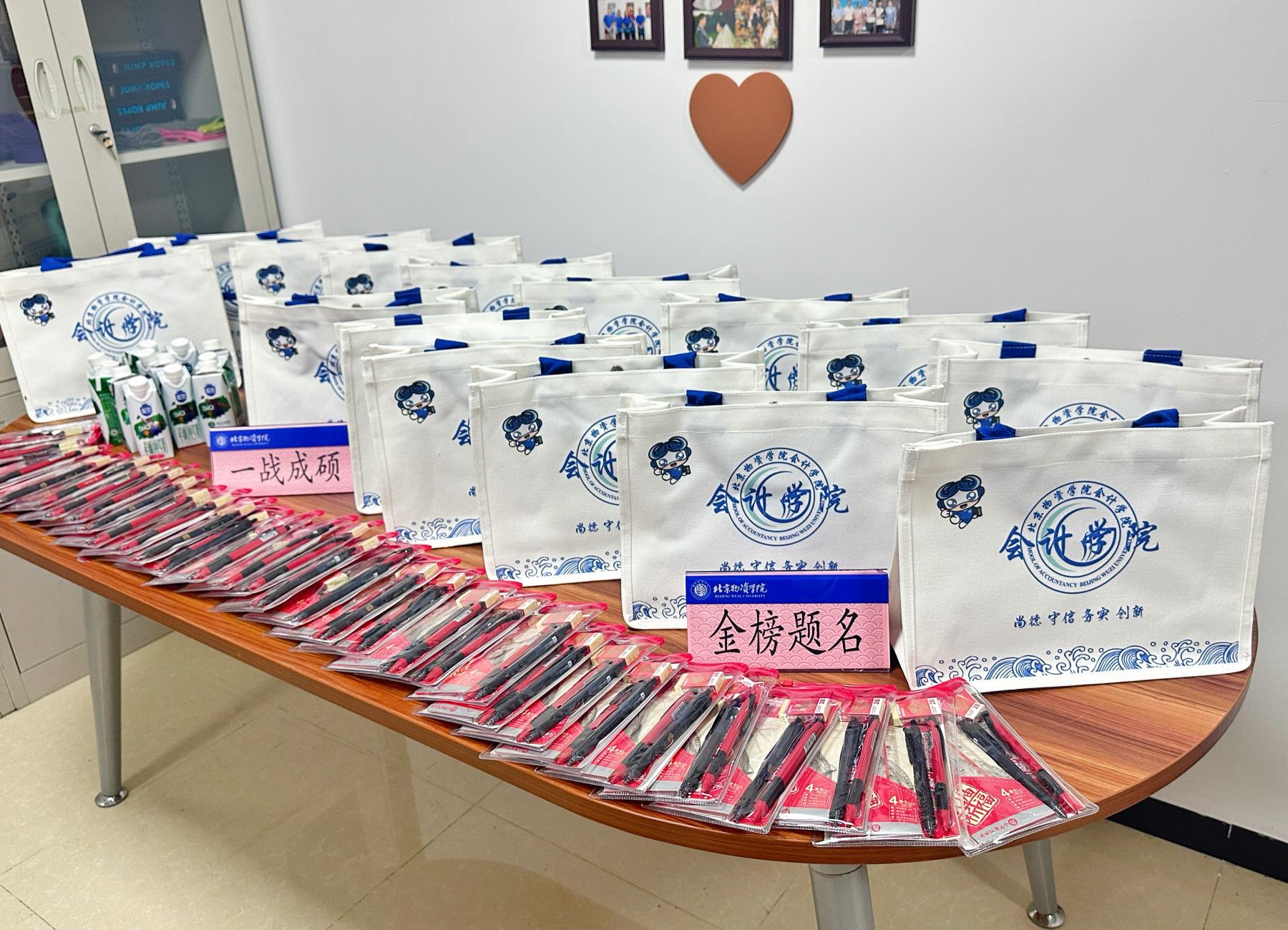 全体师生的深情厚谊,走入了考研学生们的宿舍。老师们不仅送上了学院精心准备的一系列暖心礼物,更将满满的关怀与鼓励如春风般吹进了学生们的心田。在这些贴心礼物中,既有蕴含着学院独特文化韵味的文创帆布包,也有专为考研学子量身定制的文具包,每一件礼物都深深寄托了学院对学生们的殷切期望与美好祝愿,为学生们的备考之路增添了实质性的助力与温暖。