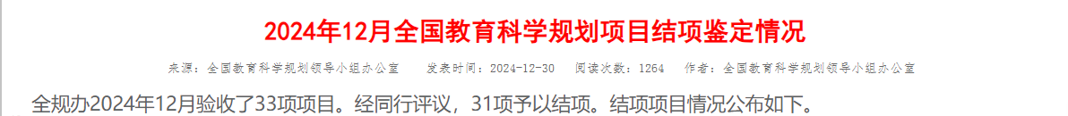 近日,全国教育科学规划领导小组办公室发布《2024年12月全国教育科学规划项目结项鉴定情况》,十大手机赌·博游戏大全