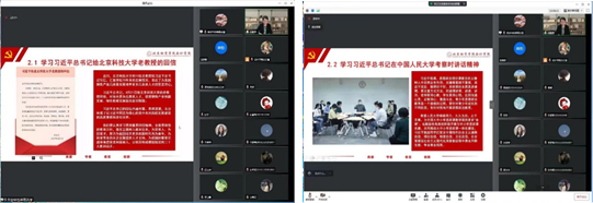 8位“请党放心、强国有我”思政课的朋辈先生组成的宣讲团的宣讲会,然后进行了习近平总书记给北京科技大学老教授的回信和在中国人民大学考察时的讲话精神的导学。
