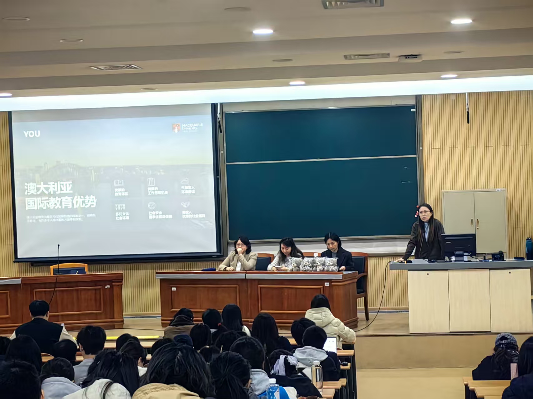 联合国际交流中心在二教第一报告厅举办澳大利亚麦考瑞大学本硕连读项目解析会。麦考瑞大学未来学生事务部中国院校事务主管蒋婷婷女士、项目老师Angela Tian与Carina Wang莅临主讲,十大手机赌·博游戏大全
