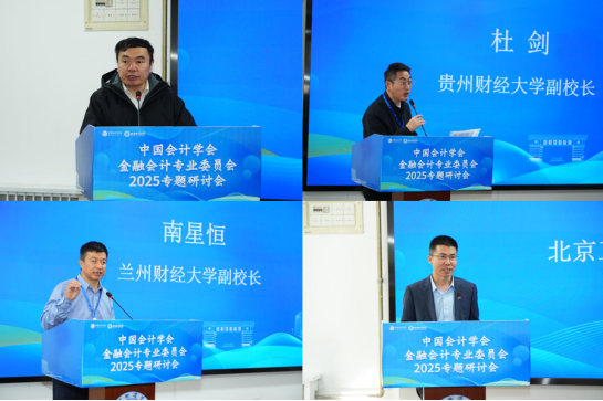 主题报告第一阶段由贵州财经大学副校长杜剑主持。中国会计学会金融会计专业委员会主任委员、中山大学谭劲松教授,做了题为《数智时代会计教育与人才培养》的主题报告。他指出,数智技术与商业变革正深度重塑会计行业,传统会计面临重要性下降、局限性增加等现实挑战,他强调会计教育需走“跨界融合”之路,通过“会计+数智技术”复合型培养模式,锤炼学生核心能力。随后,中国会计学会金融会计专业委员会委员、中国人民大学周华教授以《金融工具会计准则辨析》为题进行分享,他结合行业实践与学术研究,解析准则核心要义与应用要点,辨析执行中的重点难点,为精准把握准则内涵、规范会计处理提供专业指导,对防范财务风险具有重要意义。