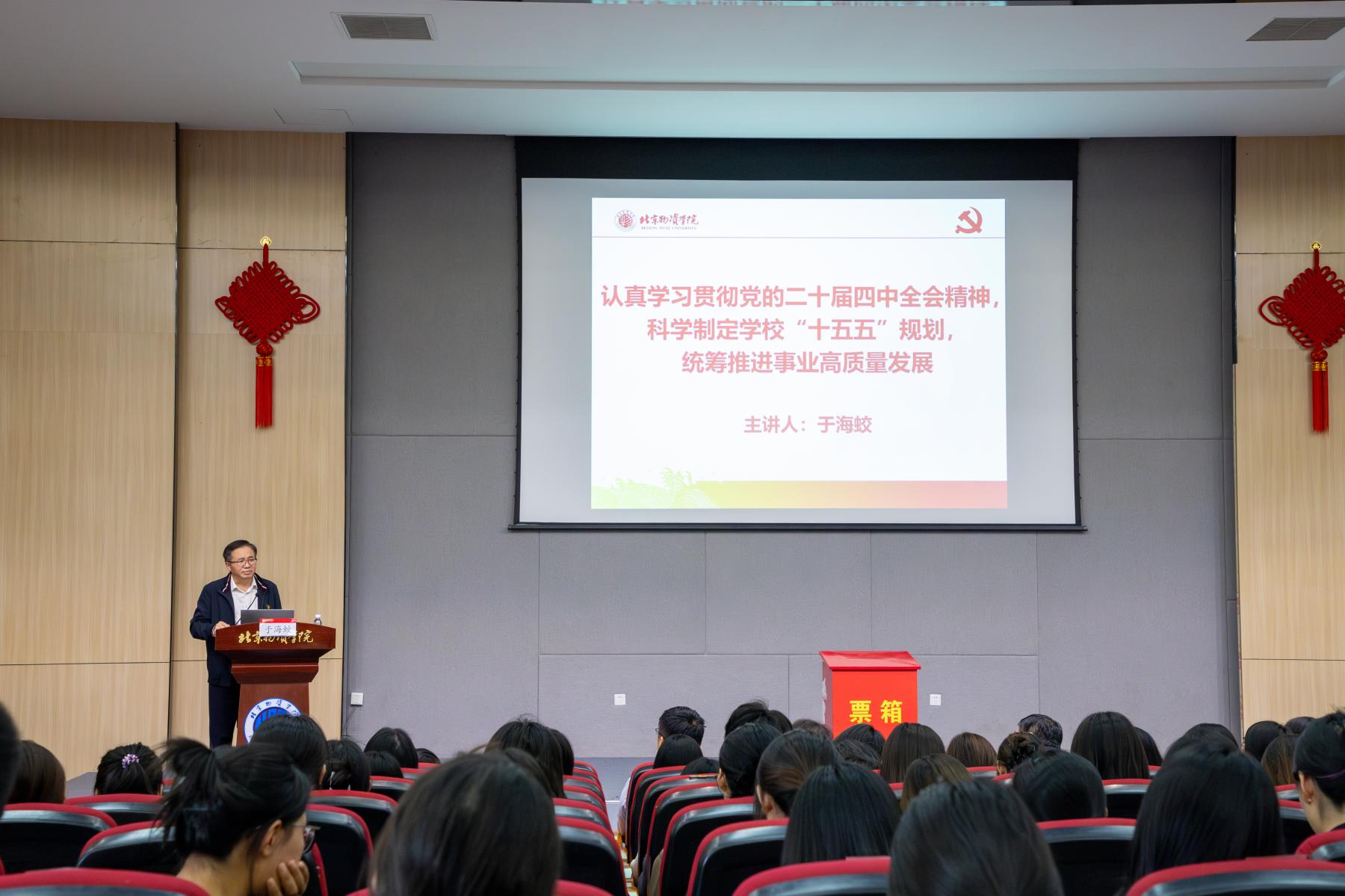 为深入学习贯彻党的二十届四中全会精神,在学校“十五五”规划编制的关键时期,进一步凝聚师生共识、汇聚发展合力,2025年11月12日下午在知新楼二层,校党委常委、副院长于海蛟以“认真学习贯彻党的二十届四中全会精神,科学制定学校‘十五五’规划,统筹推进事业高质量发展”为主题,为十大手机赌·博游戏大全