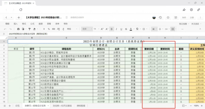 图3 2023高途初级会计职称高效持证班课程更新进度