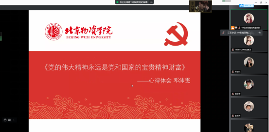 接着是由邓佩雯、维若西两位同学带领大家进行九月份的理论学习——学习党的伟大精神。两位同学依次分享了自己阅读相关主题文章的心得体会。无论是哪一位同学的分享,都提到了我们党正踏上全新的征程,应总结经验,牢记初心使命、开创美好未来。而我们要做的就是坚持党的全面领导,科学认识、学习党的创新理论体系,继续努力为党和人民作出自己的贡献!