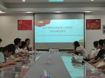 为加强党支部学生党员们的党性修养,增进同学们的思想交流,会计学专业学生第二党支部于2021年7月8日在科研楼410会议室开展七月份理论学习。