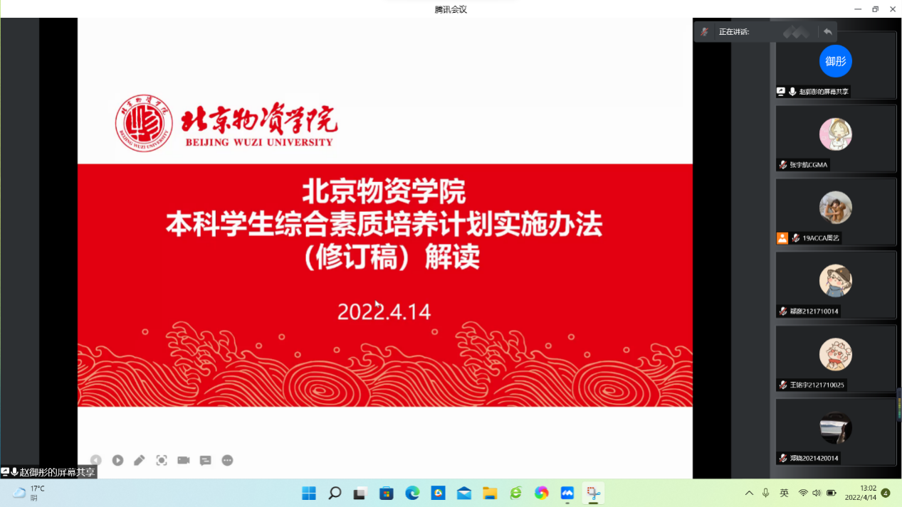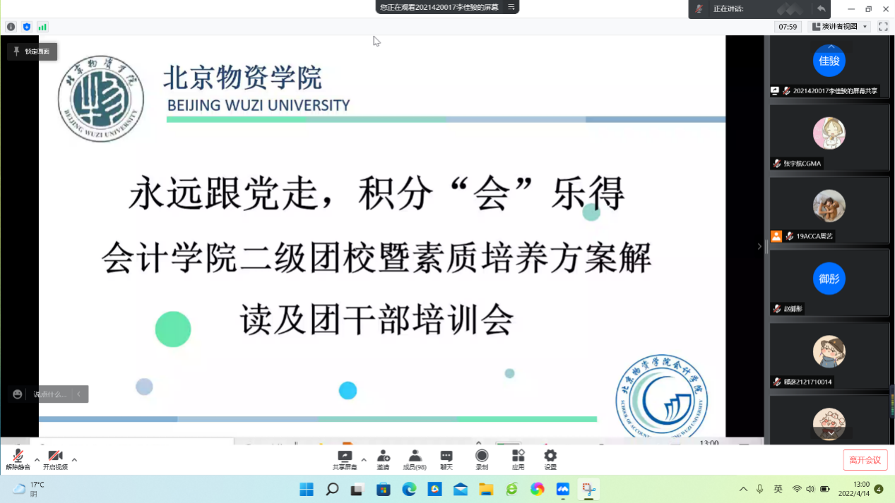 团委书记赵御彤老师,19、20级团委学生会干部,各本科班班长、团支书,以及各社团相关负责人。